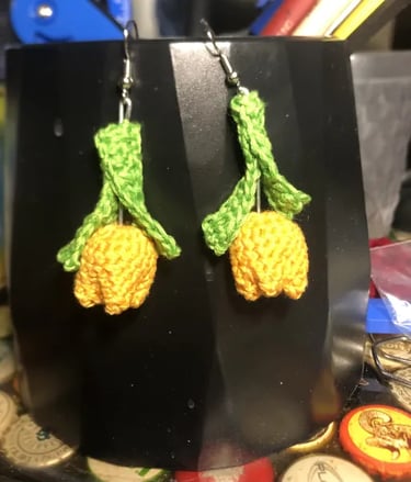I can create custom one-of-a-kind earrings. I have experimented with multiple designs and floral themes as well as hoops. Once materials are obtained and design specified, earrings can be completed within a few hours.