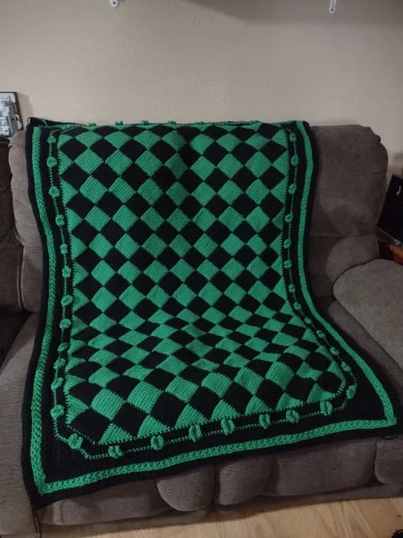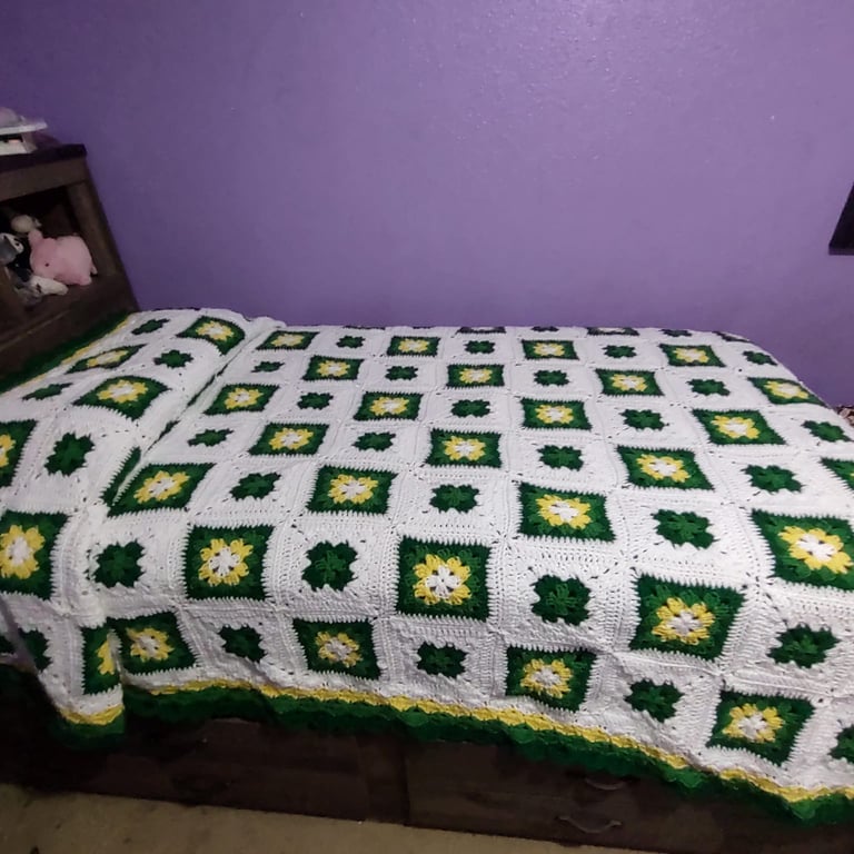 I can create one-of-a-kind blankets ranging in size from simple baby blankets for that upcoming addition to the family, to throw blankets for snuggling on the couch. I can also make larger blankets to fit a twin, full or queen size bed. I can even make a king size, however be advised that the larger the project, the longer it takes to make.